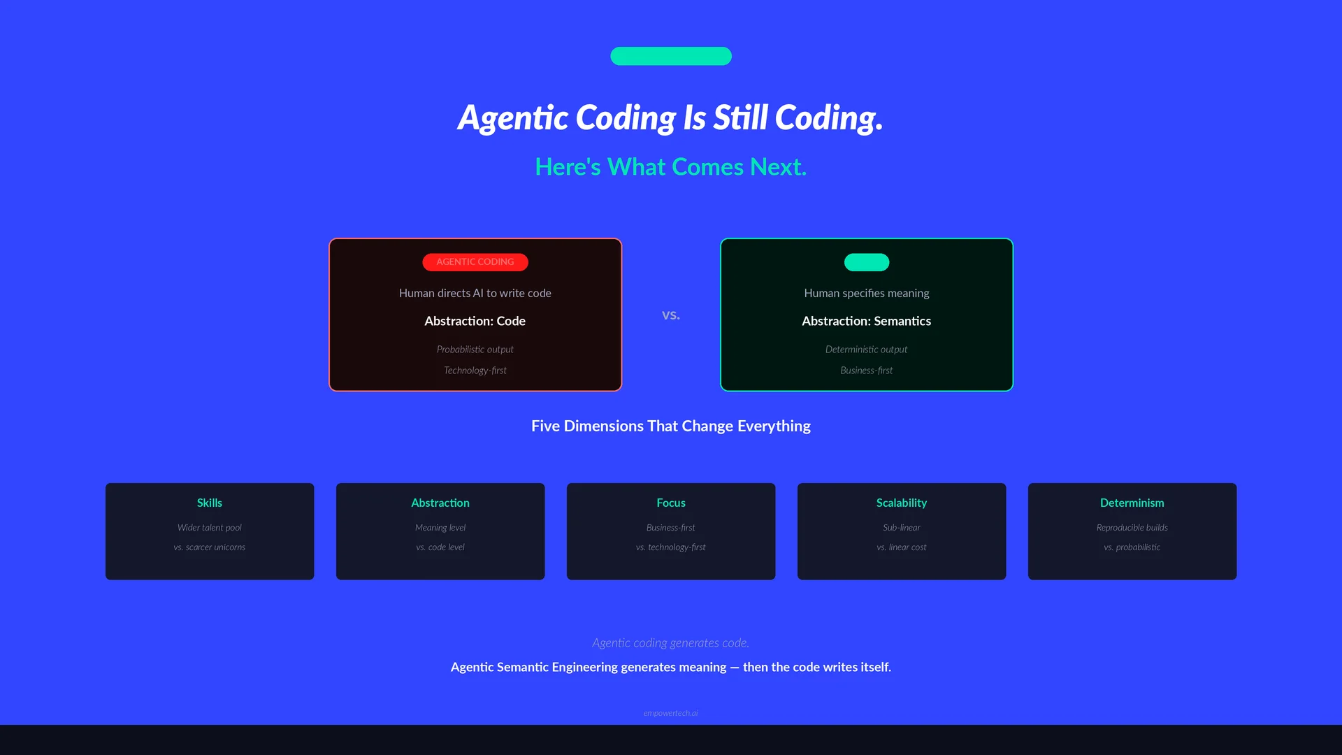 The question isn’t whether agentic coding was a good idea. It was. The question is whether it’s the end of the story. We believe it’s the beginning — and that the paradigm that follows it starts with meaning.